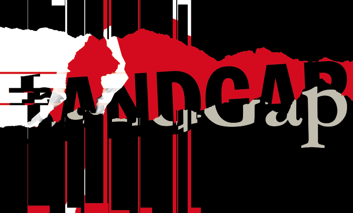 Empiezo a pensar en el concepto gráfico para "BandGap", el grupo de música de mi amigo Miguel Ángel Flores. Sea cual sea el desenlace final, muestro el camino conceptual que pretendo: el logotipo en distintas tipografías y colores (rojo, negro, blanco), colocado en sucesivas capas para ser estas después rasgadas, troceadas, recortadas y traslapadas.